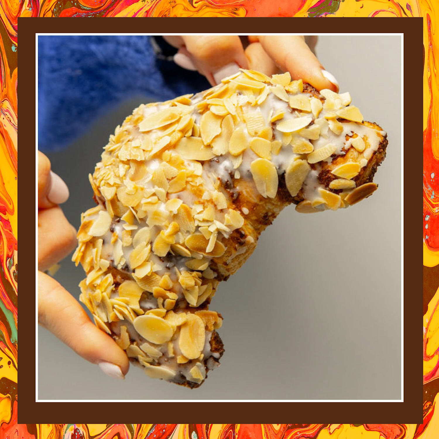 A croissant with rich white poppy seed filling and dried fruits, sweetened with honey and topped with icing and almonds. Visit A.Blikle!